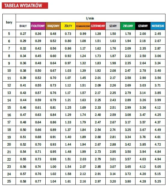 - zalecane ciśnienie: 5 – 20 barów