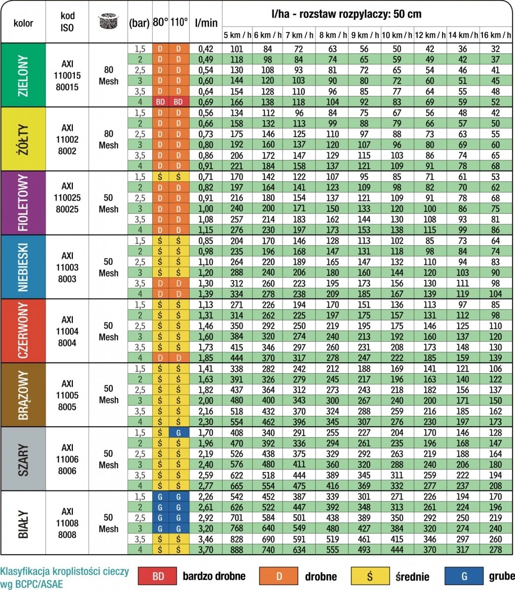 AXI 110-rozpylacz ceramiczny płaskostrumieniowy standardowy (zielony, żółty, fioletowy, niebieski)