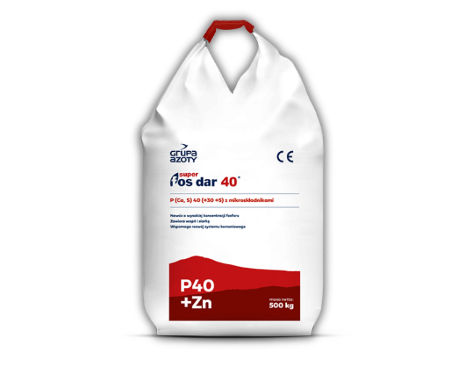 Super FOS DAR 40® – SUPERFOSFAT WZBOGACONY 40% P2O5 Jest uniwersalnym, skoncentrowanym nawozem fosforowym, który można stosować przedsiewnie, wiosną i jesienią na wszystkich glebach i pod wszystkie rośliny uprawne łącznie z użytkami zielonymi. W swoim składzie, oprócz fosforu, zawiera również wapń i siarkę. Nawóz przeznaczony jest dla roślin wymagających dobrego zaopatrzenia w fosfor, wapń i siarkę do których należą: rzepak ozimy i jary, gorczyca, kapusta, rośliny motylkowe drobnonasienne (lucerna, koniczyna), a także inne gatunki roślin np. zboża, kukurydza, ziemniaki, buraki. Zawartość w nawozie wapnia oraz siarki jest bardzo cenna również w nawożeniu użytków zielonych, ponieważ składniki te poprawiają jakość paszy dla przeżuwaczy. Ze względu na wysoką zawartość fosforu bardzo dobry do stosowania pod rośliny nawożone obornikiem, zawierającym zawsze za mało fosforu w stosunku do potasu.