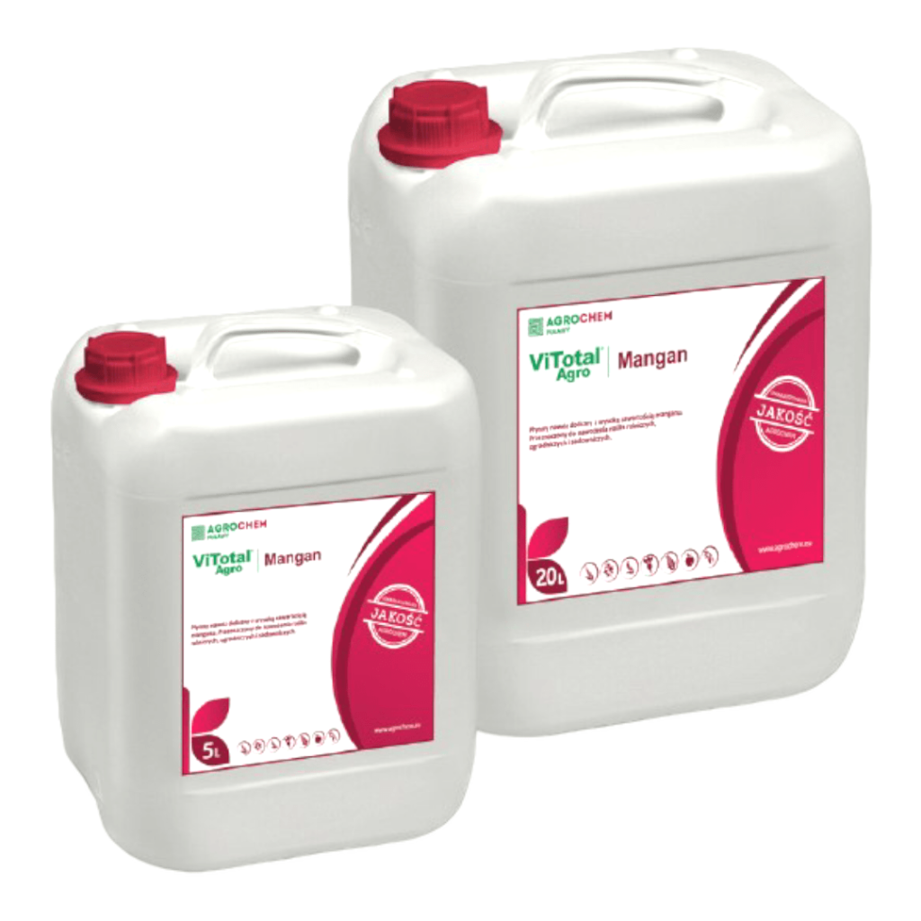 ViTotal Agro® Mangan to nawóz w postaci płynnej o wysokiej zawartości manganu, przeznaczony do nawożenia roślin rolniczych, ogrodniczych i sadowniczych a także stosowany w systemach fertygacji. Całkowicie rozpuszczalny w wodzie. Stosowanie nawozu zalecane jest szczególnie na glebach o pH powyżej 6,7 oraz na glebach o wysokiej zawartości wapnia, substancji organicznych lub ciężkich, podmokłych i słabo przepuszczalnych.